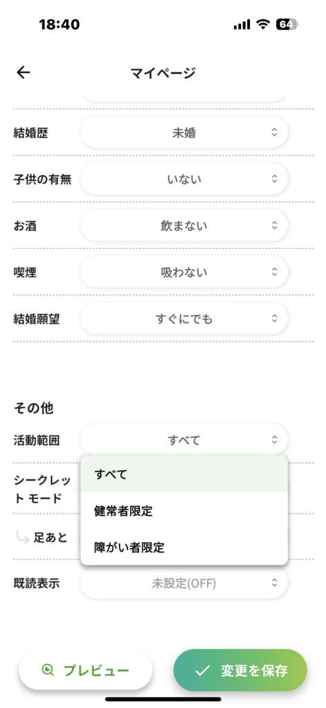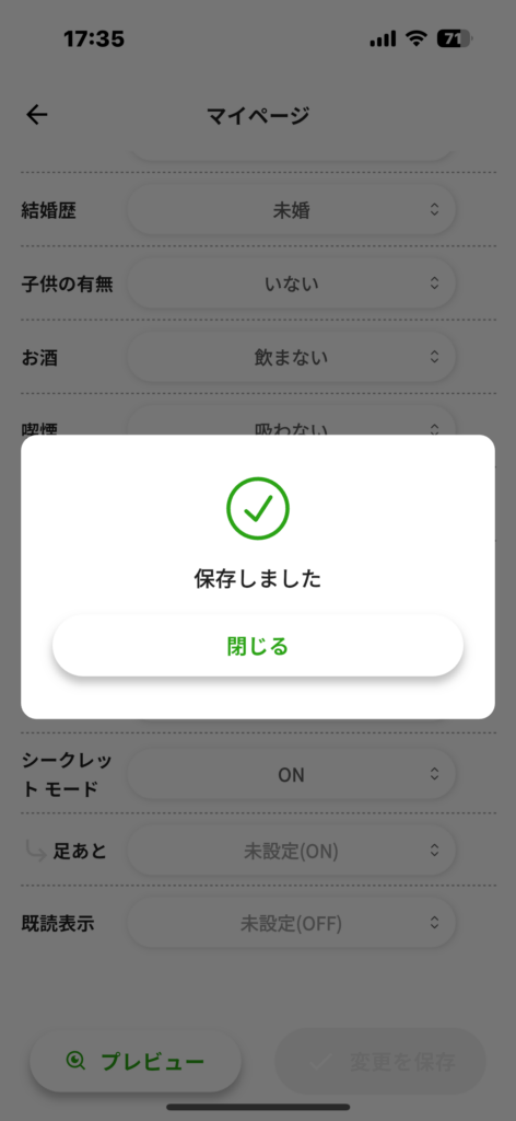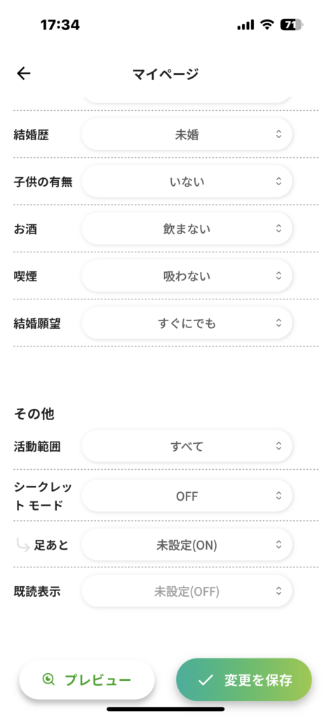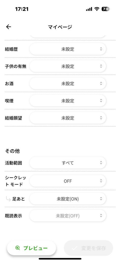 あなたのプロフィールを見に来た方がいた場合、「足あと」として表示されます。(ON)