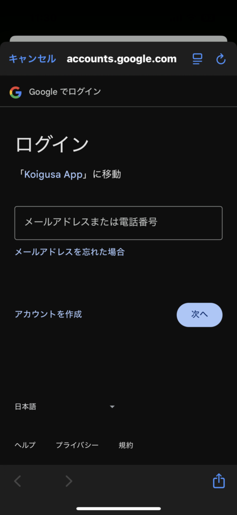 Googleアカウントをお持ちの場合は、Googleアカウントでログインしてください。
