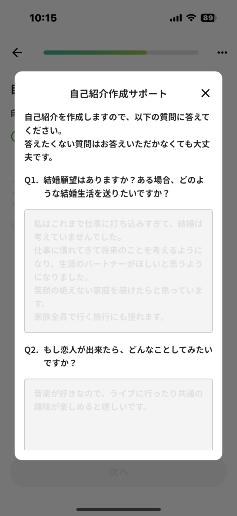 自己紹介作成サポートを利用して、あなたの魅力を伝えます。