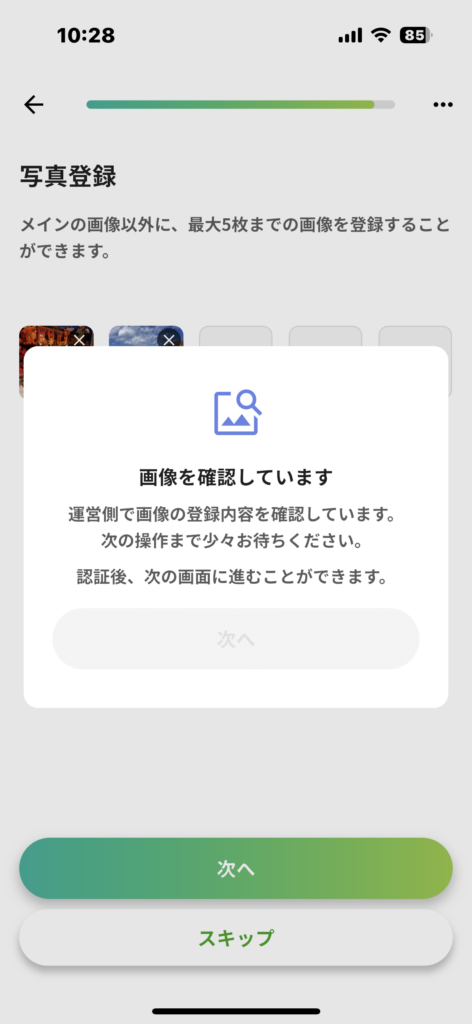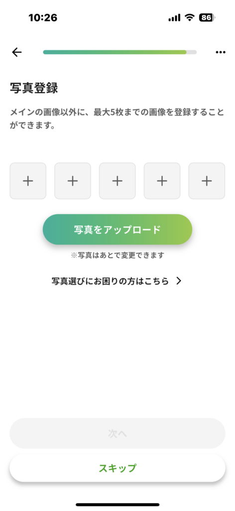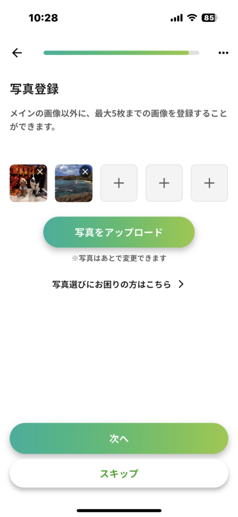メイン画像(プロフィール画像)以外に最大5枚まで画像を登録することができます。