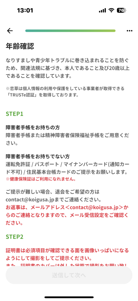 なりすましや青少年トラブルに巻き込まれることを防ぐため、関連法規に基づき、本人であること及び20歳以上であることを確認しています。