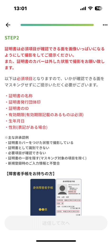 証明書は必須項目が確認できる面を画像いっぱいになるようにして撮影し、ご提示ください。