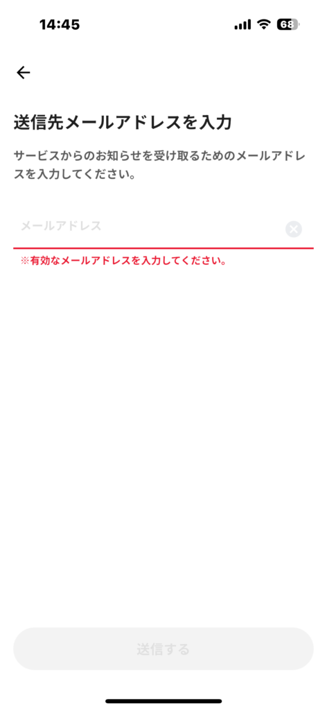 入力したメールアドレス宛てに認証メール(仮登録のお知らせ)が送られてきます。※メール受信まで5分ほどかかる場合があります。